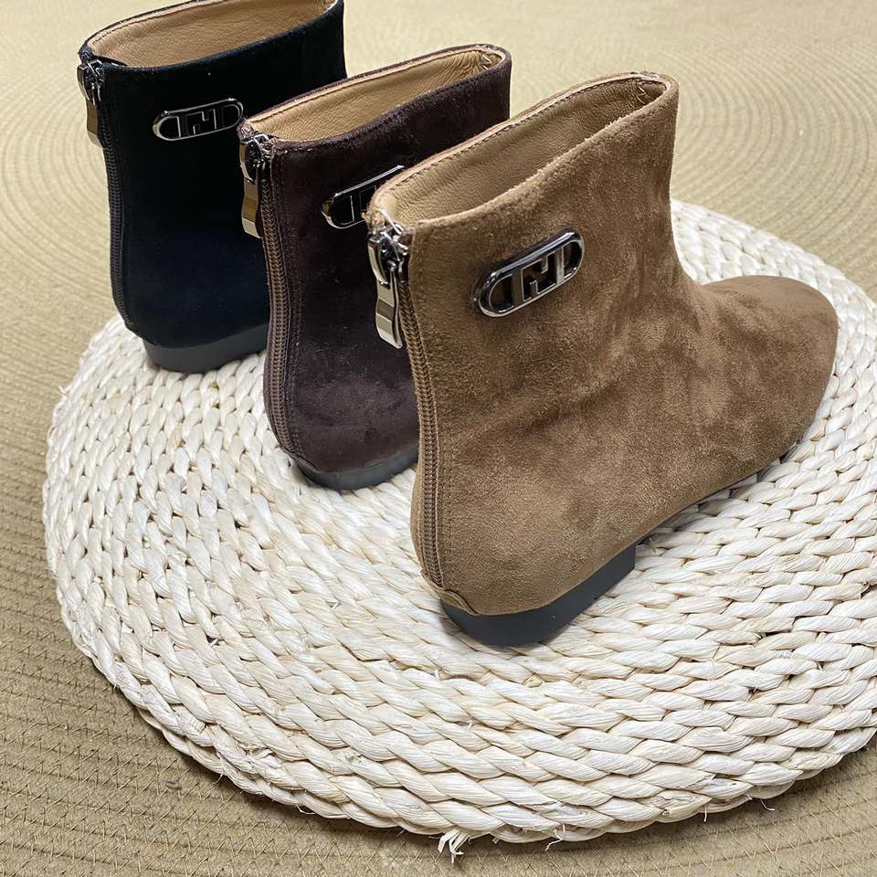 100% Suede Lamb Leather Ladies Ankle Boots Short Boot Plus Size Soft Bed Flat Heel Round Toe Shoe Customize logo