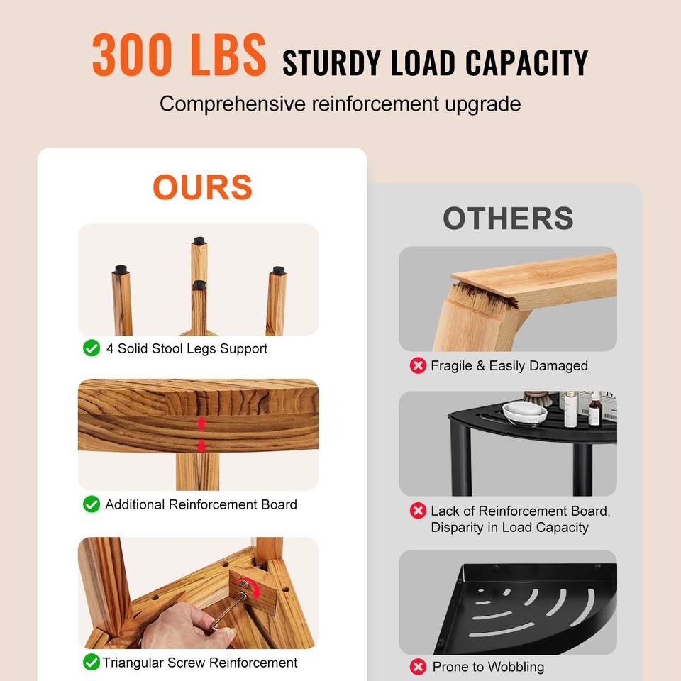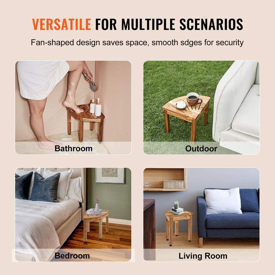 100% Teak Wood Corner Shower Bench 12.4\" Height 11.5\" Radius Beach Mold-Resistant Storage Shelf Shower Stool for Bathrooms