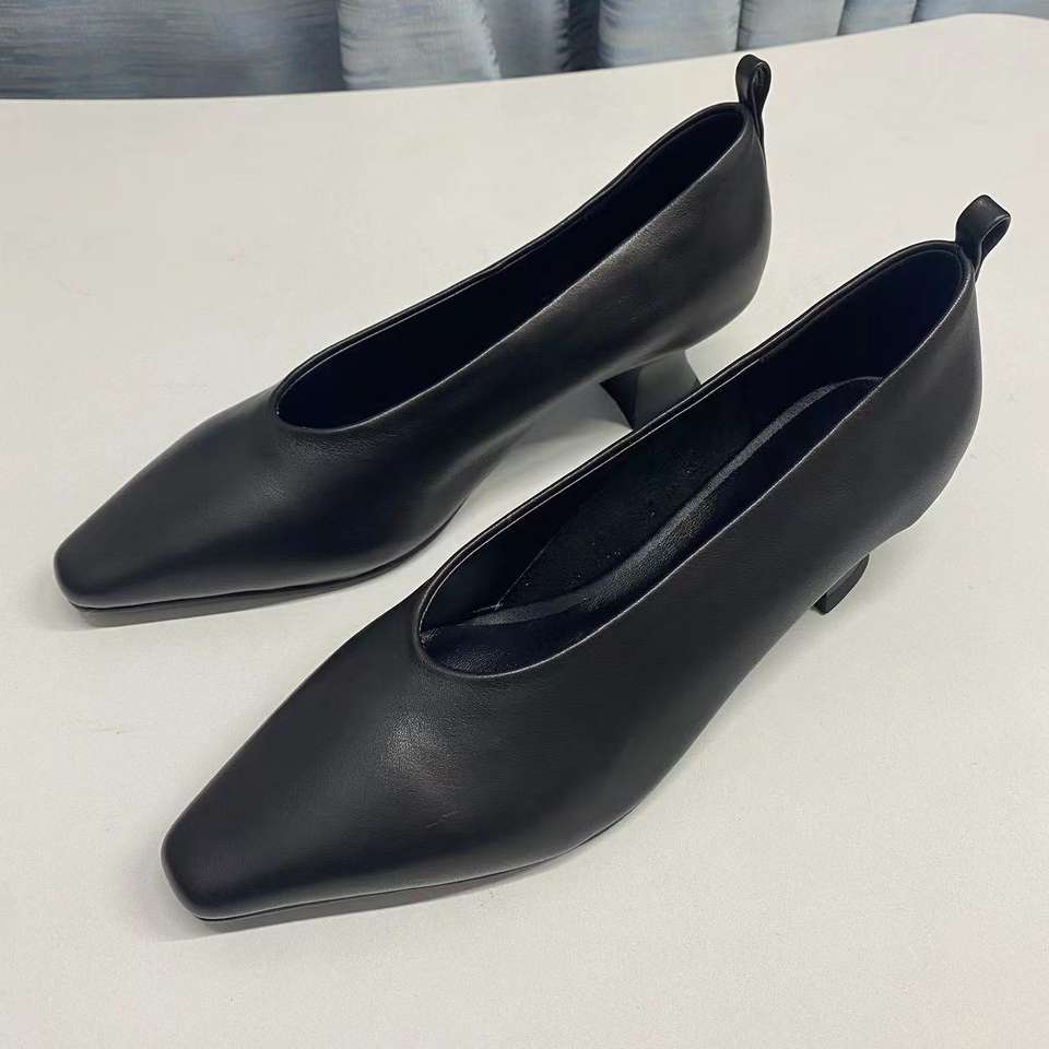 100% Top Cow Leather Women Formal Shoe Sheep Insole 5cm Cat Heel Business Meeting Pumps Office Lady Shoes Customize logo Factory