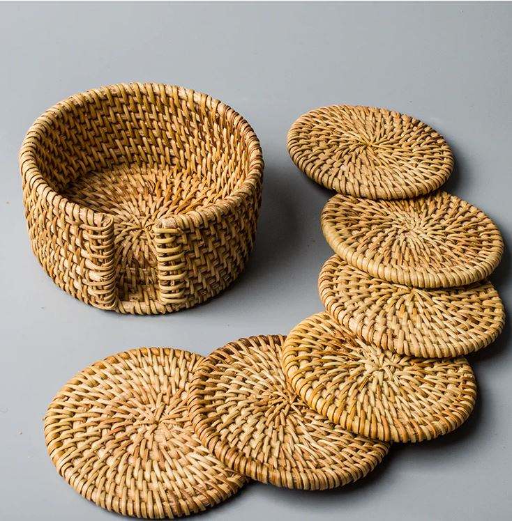 100% Vietnam Natural Rattan Material Rug Coasters for Drink Special Souvenir for Family and Friends