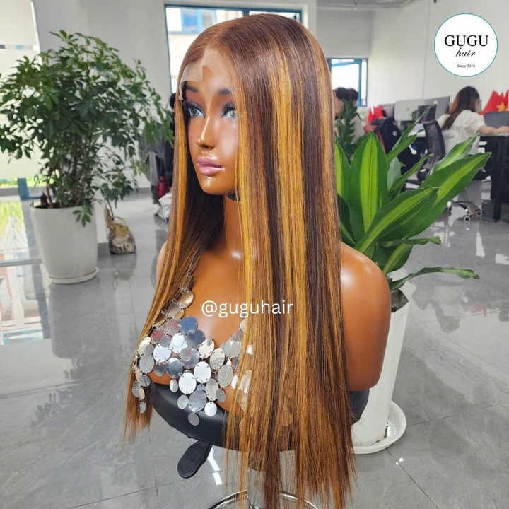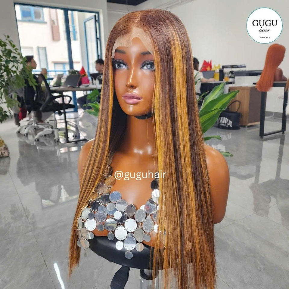 100% Vietnamese Human hair Ombre Highlight/27 color 5x5 Closure Wig Bone Straight Wholesale Price Products for Black Women