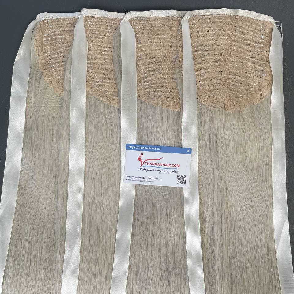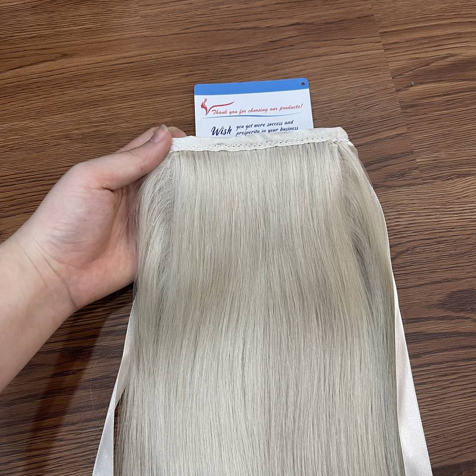 100% Vietnamese Virgin Hair Extensions Cuticle Aligned Ponytail Hair Drawstring Wrap Around Silver Color Ponytail Human Hair