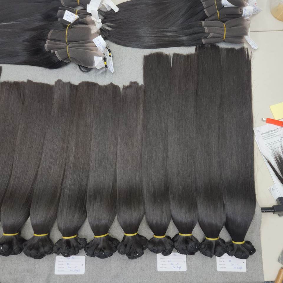 100% Vietnamese Virgin Raw Human Remy Natural Straight Donor Wholesales Vietnam Bouncy Super Double Drawn Machine Double Weaving