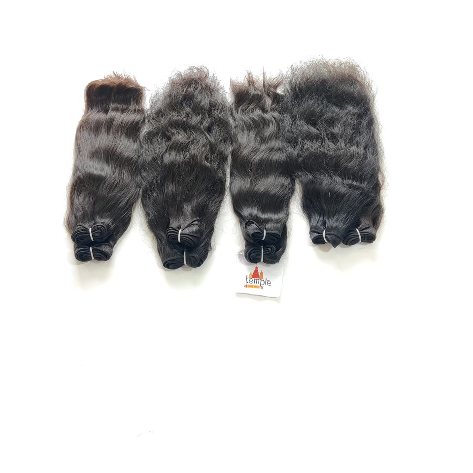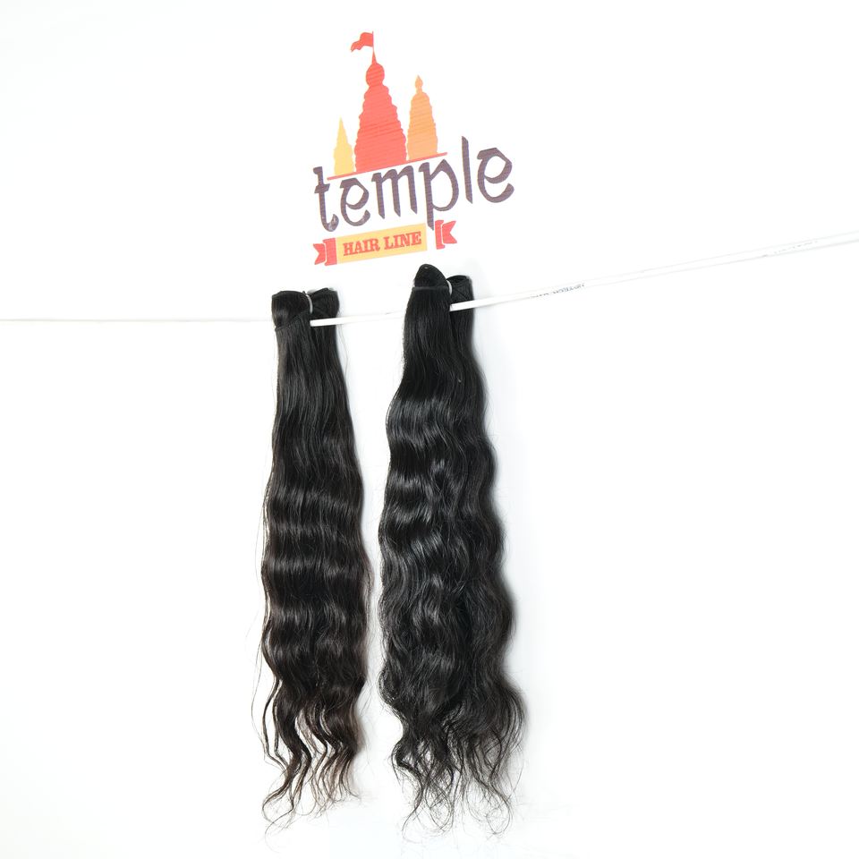 100% Virgin Raw Indian Temple Human Hair Extensions Cheap Braiding-Free Double Weft Machine Woven Waves Curls None-Chemical