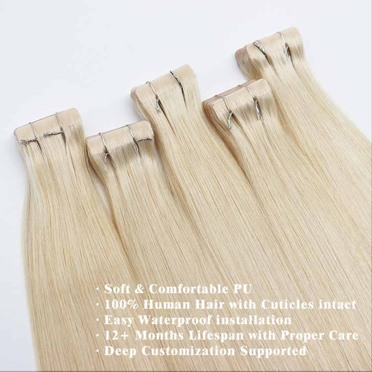 100% Virgin Remy Straight Style Full Cuticle Russian Weft Raw Tape Ins Natural Hair Type Human Hair Extensions