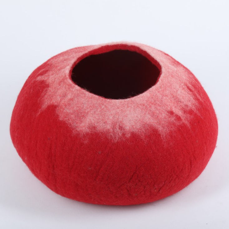 100% Wool Felted Red Cat House Modern Fashionable Handmade Solid Pattern Cat Bed Cave Sustainable Durable by Trained Artisans