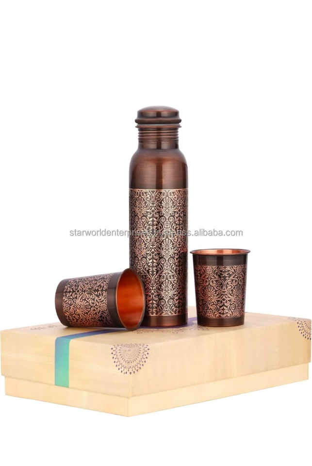 100% copper bottle Friendly Indian Copper Bottle Kitchen and Tabletop Drinkware Pure Copper metal Water Bottles