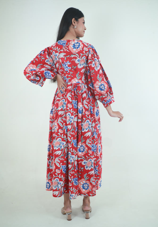 100% cotton woven ladies dress block print maxi Indian Summer loose fit women clothing