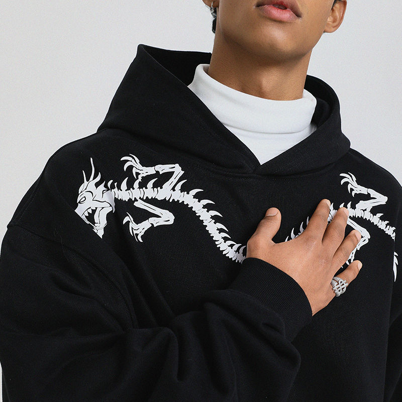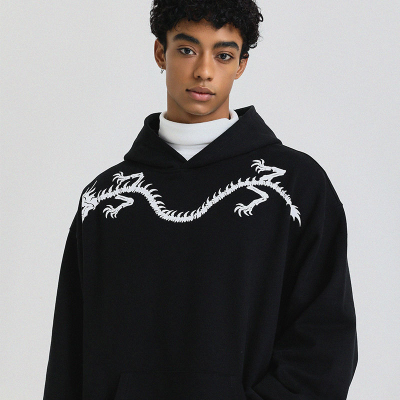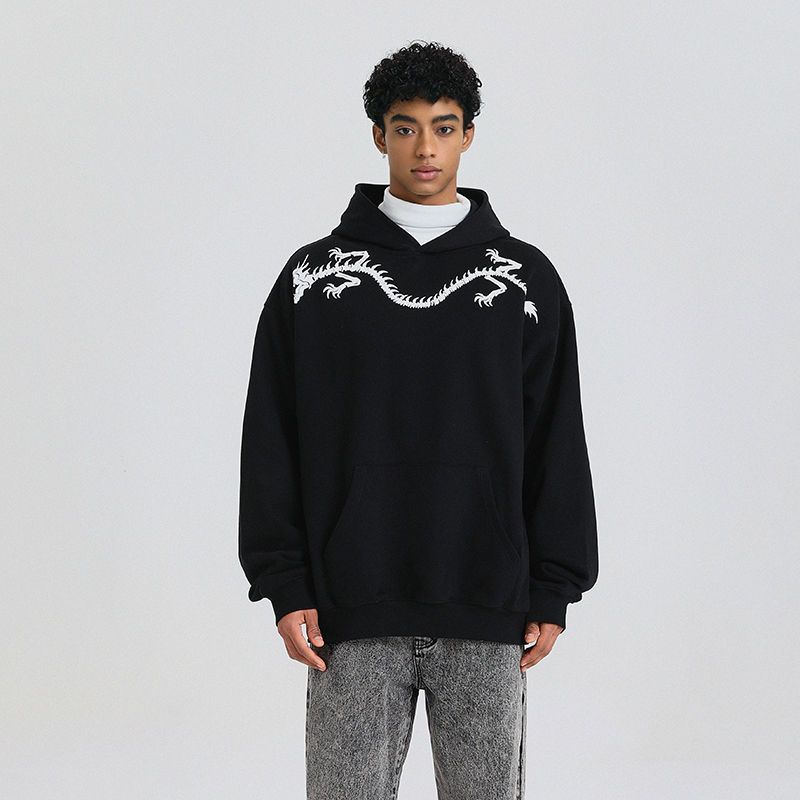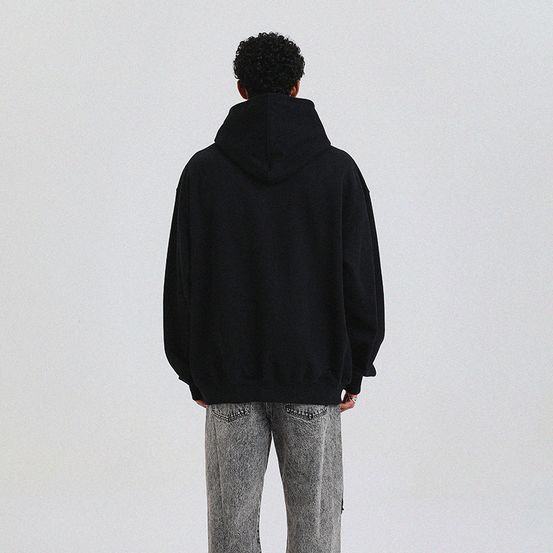 100% high quality Cotton Stylish Hoodie Street Black Embroidery Men Autumn and Winter Loose Oversized Sweatshirt Hoodie
