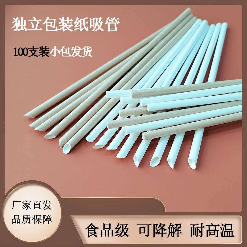 100 individually packaged paper straws, disposable biodegradable food grade coarse and fine paper straws