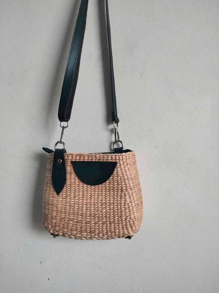 100% natural Water hyacinth papyrus bag from Vietnam factory with zipper, feminine bow pattern, women's handbag