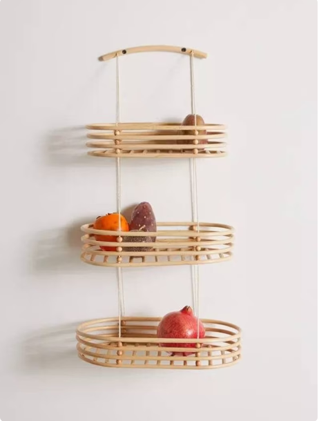 100% Natural Rattan Wall Shelf 3 Tier Hanging Storage