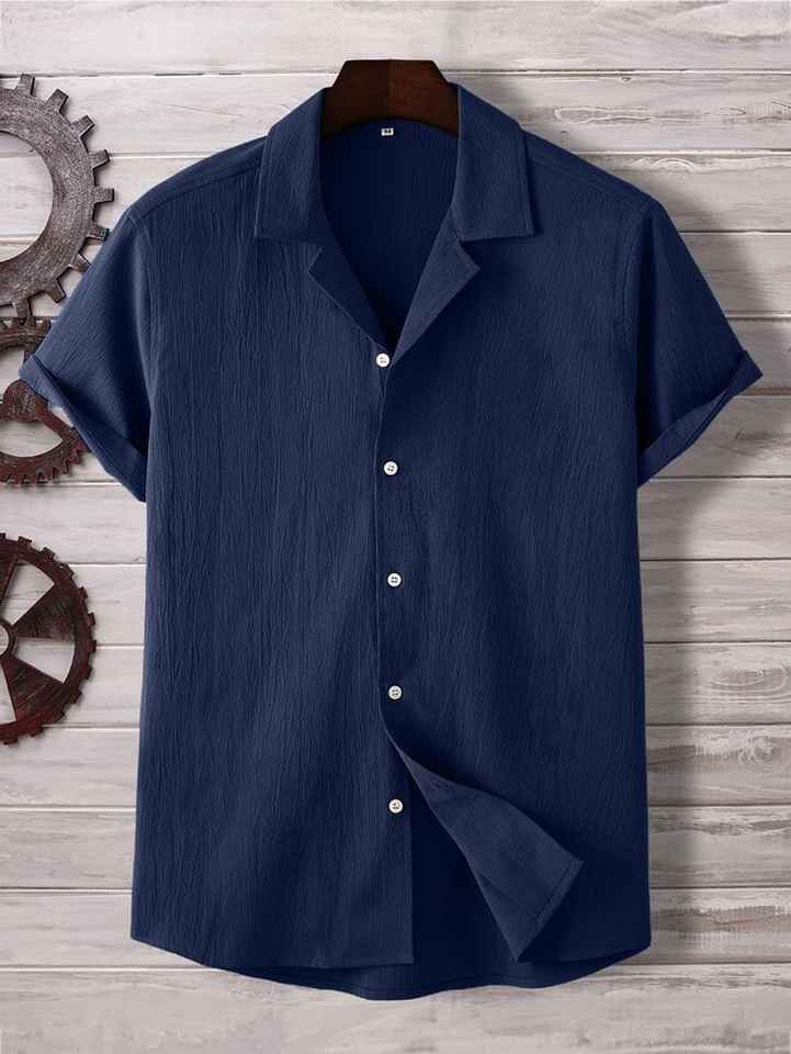 100% Soft Fabric Short Sleeve Fabric Plain Shirt Embellished Non-Stretch Summer Men Clothing