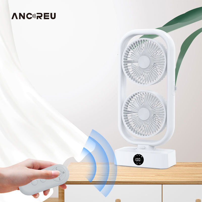 10000mAh USB Rechargeable Portable Desktop Fan With Lamp Low Silent Remote Control Twin Tower Table Fan Power Bank