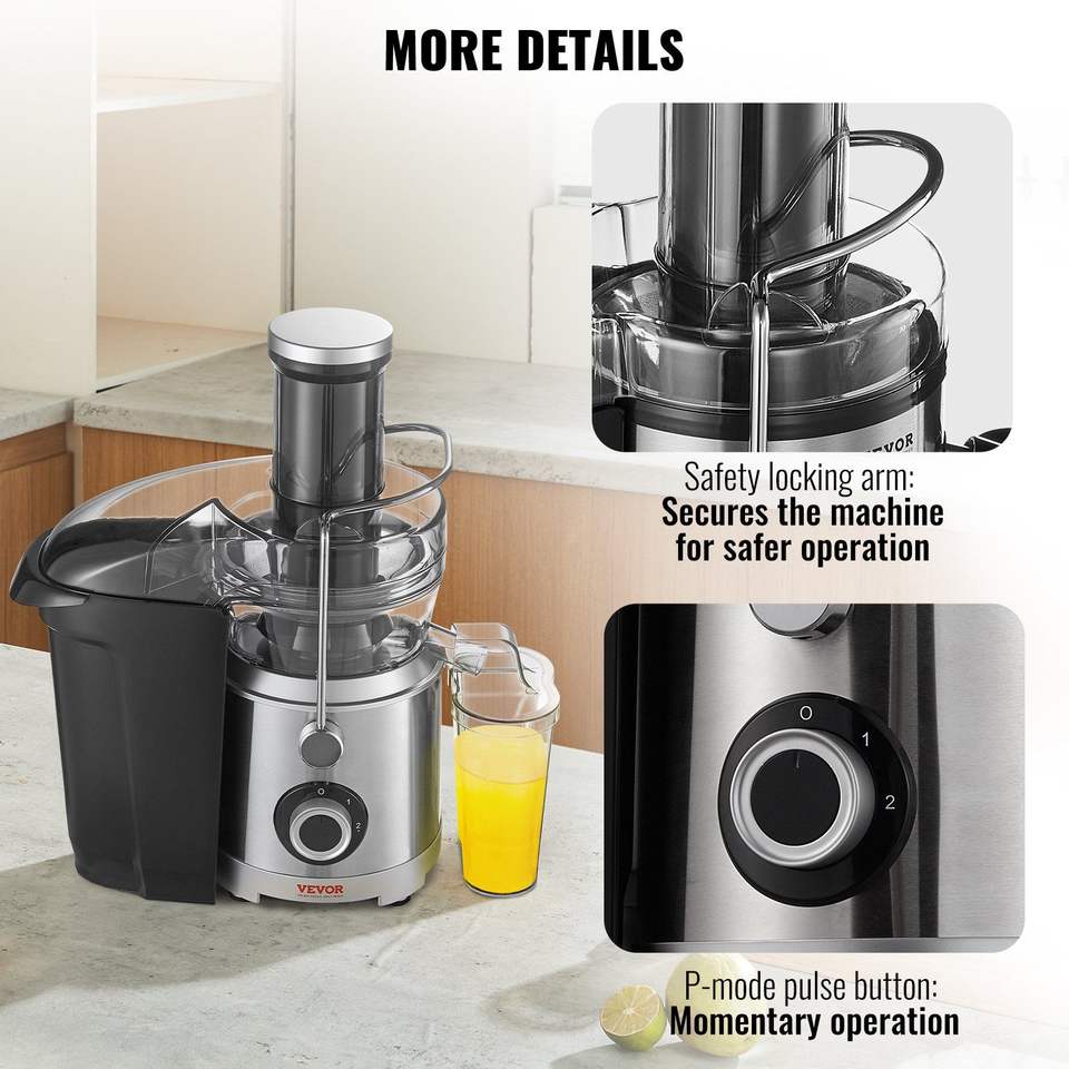 1000W Motor Stainless Steel Centrifugal Juicer Machine BPA-Free Easy Clean Juice Extractor 3\" Feed Chute Big Mouth for Fruits