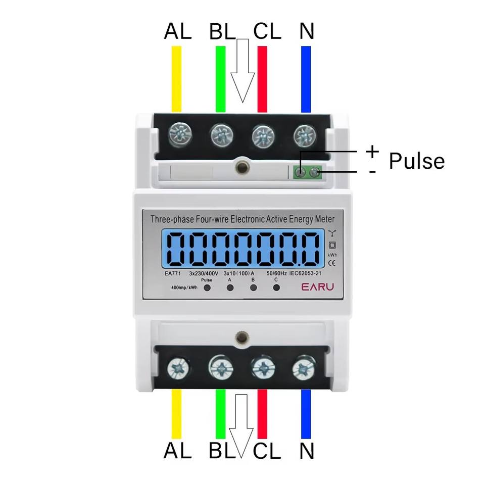100A AC 3*230/400V 3 Phase 4 Wires Electric Energy Meter Din Rail Electricity Meter 50/60HZ Electric Meter LCD Backlight EA771