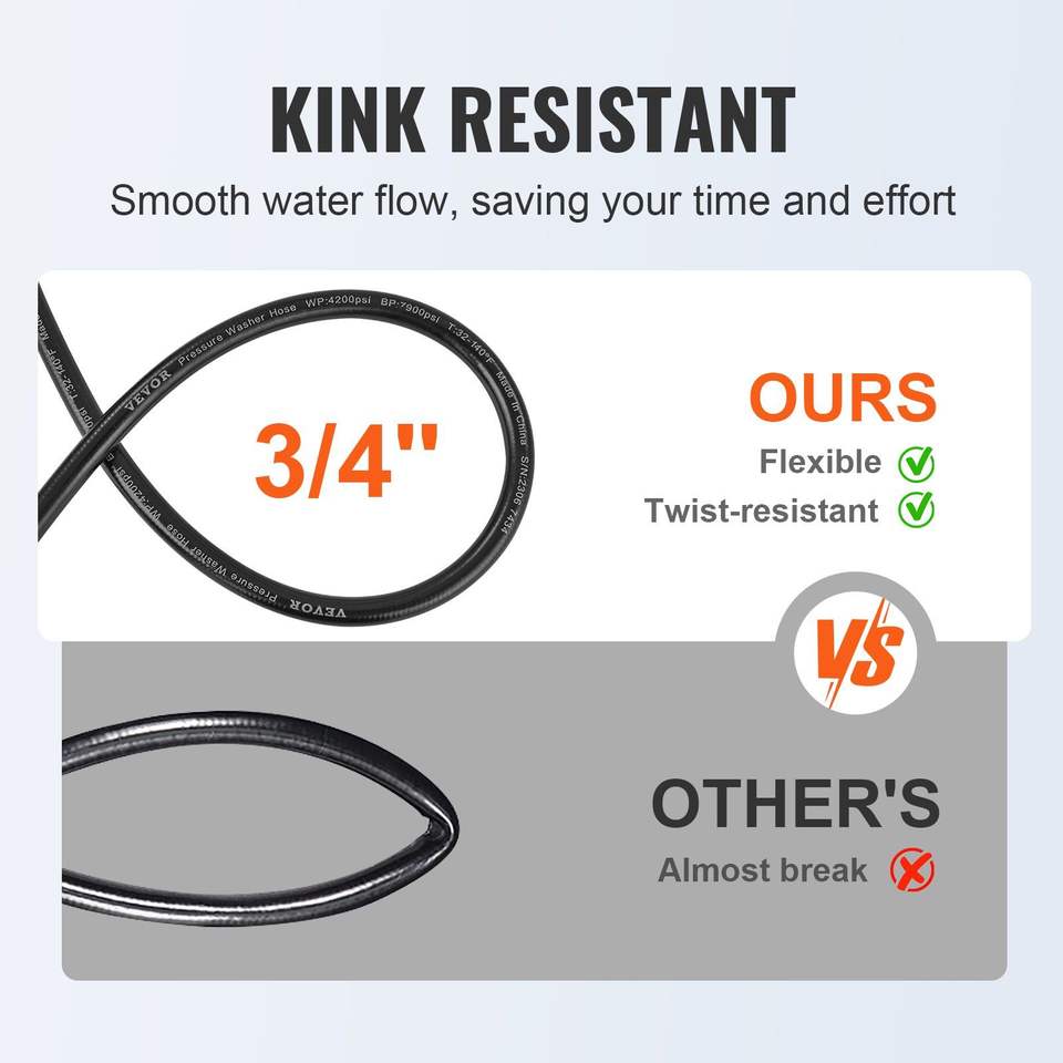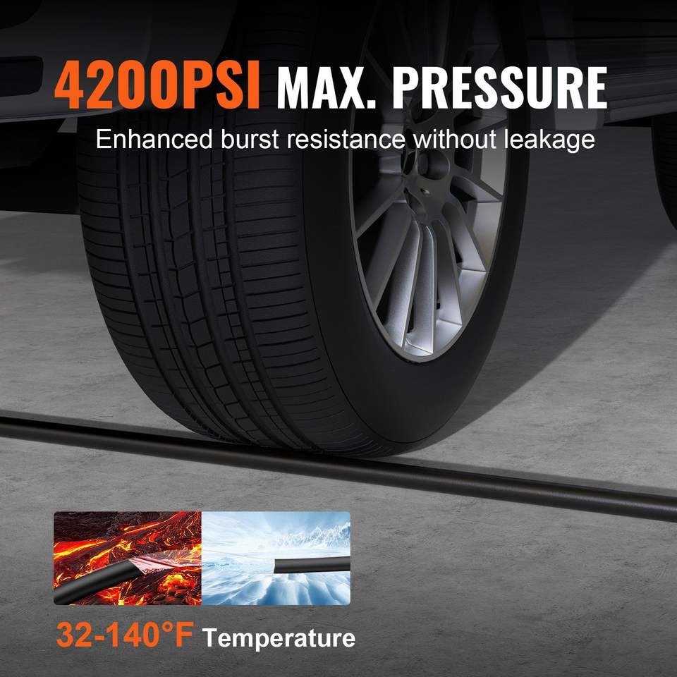 100FT Kink-Free M22-14mm Brass Thread Pressure Washer Hose 3/4'' Bending Radius 4200 PSI Heavy Duty Power High Pressure Cleaners