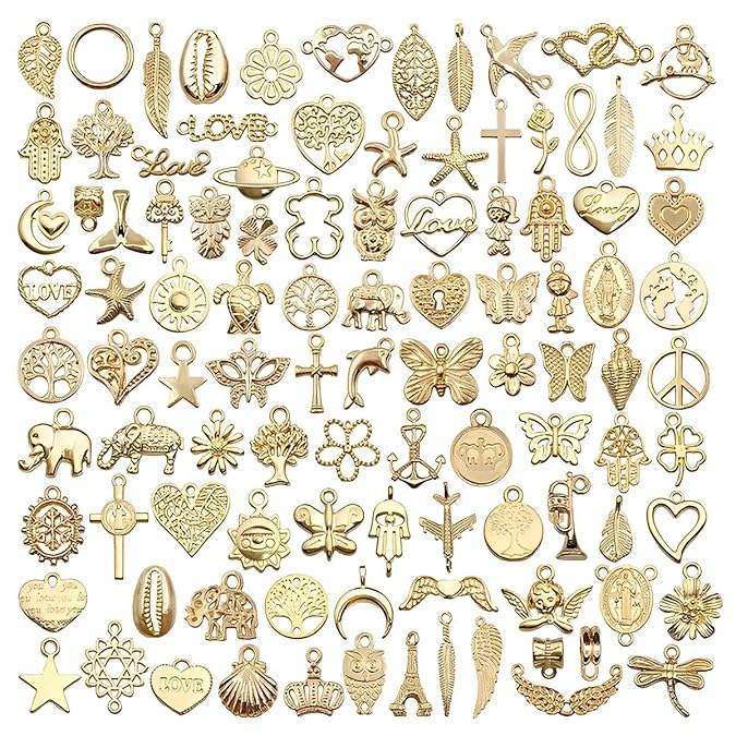 100Pcs Mixed charms for jewelry makingVintage Metal Pendants with Lobster Clasps DIY Bracelet