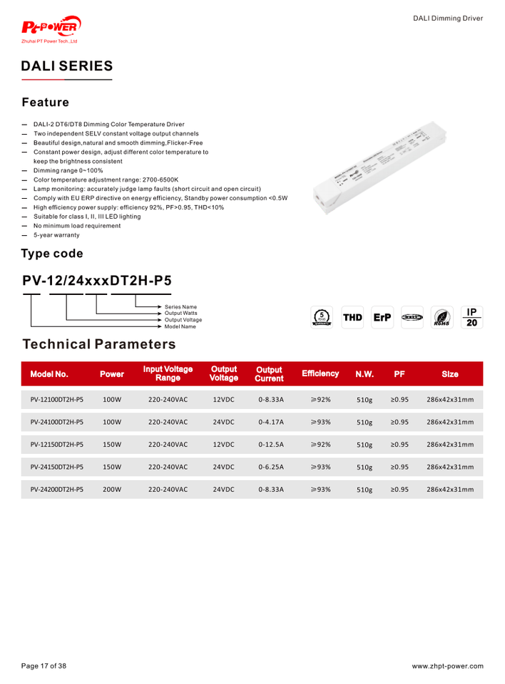 Type:Constant Voltage DALI-2 DT8 LED Driver