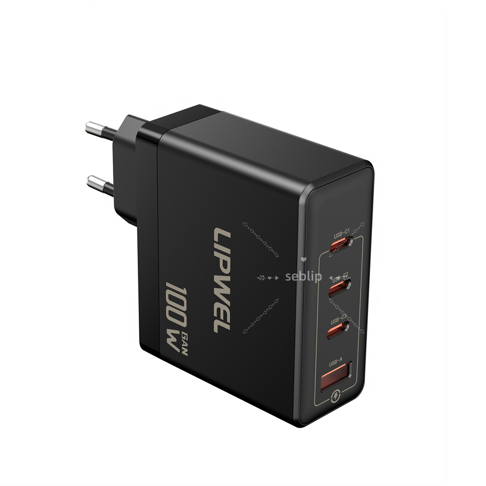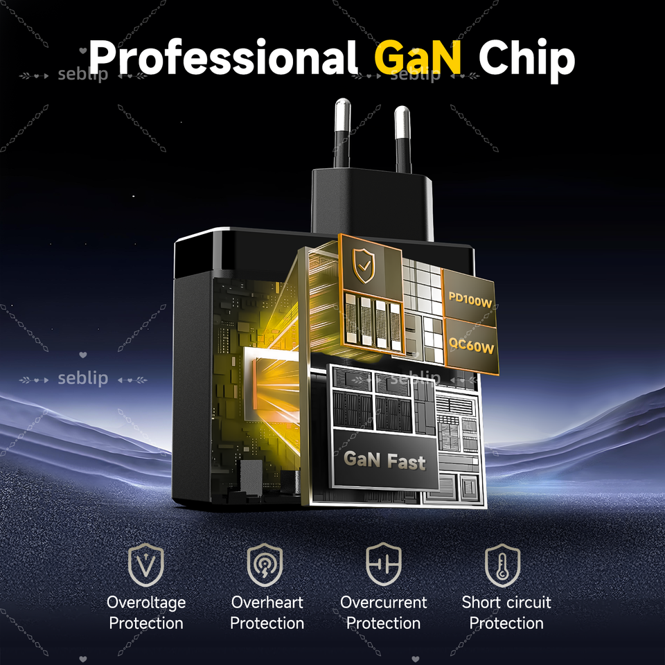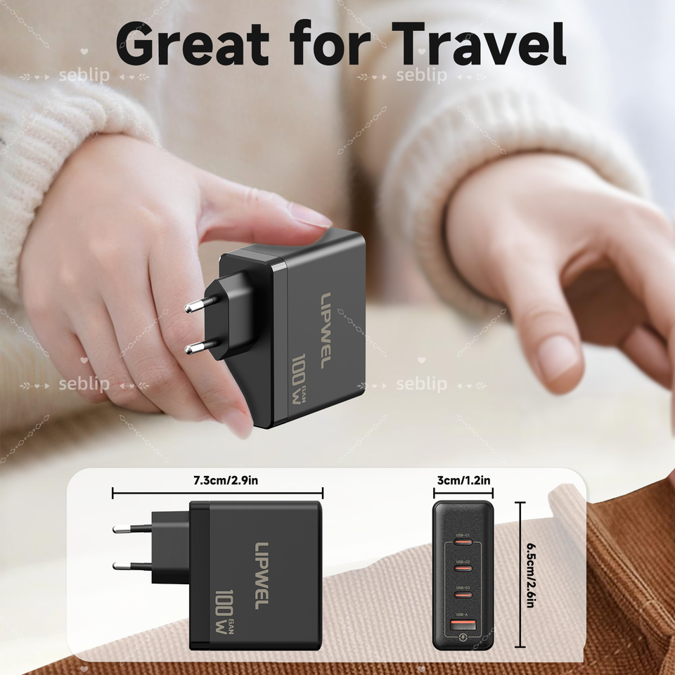 Compact 100W GaN Travel Charger EU Power Plug 4 USB Ports Overload Protection Fast Charging Power Adapter Phone Mobile Camera