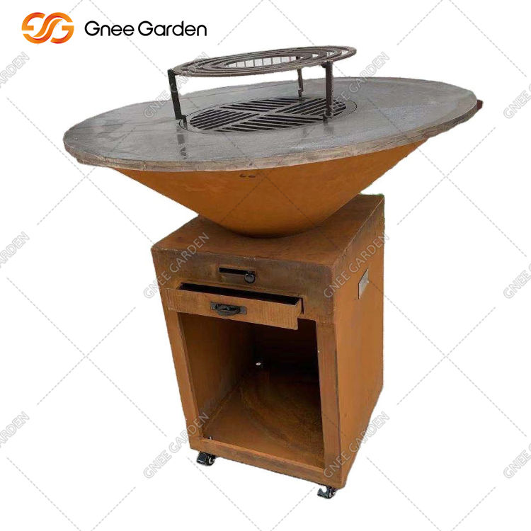 100cm Corten Steel Plate Fire Pit BBQ - Portable Wood-Burning Grill for Camping & Backyard Gatherings