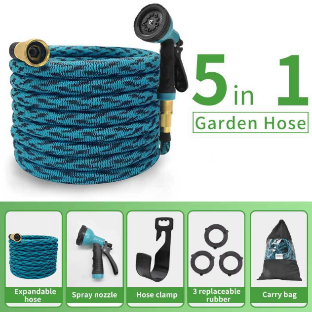 100ft Expandable Garden Hose with 10 Function Spray Nozzle All Brass Connectors Latex and Polyester Material Water Hose Pipe