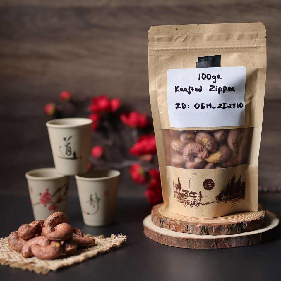 100g Organic Premium Roasted Vietnam Cashew Kernels in Kraft Zipper-Buttery & Salty Direct Vietnam Manufacturer OEM Available