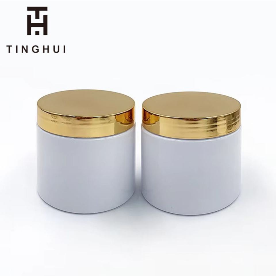 100ml 120ml 150ml 200ml 250ml Cosmetic Cream Hair Gel Body Scrub Butter Container 8oz Amber White PET Plastic Jar With Gold Lid