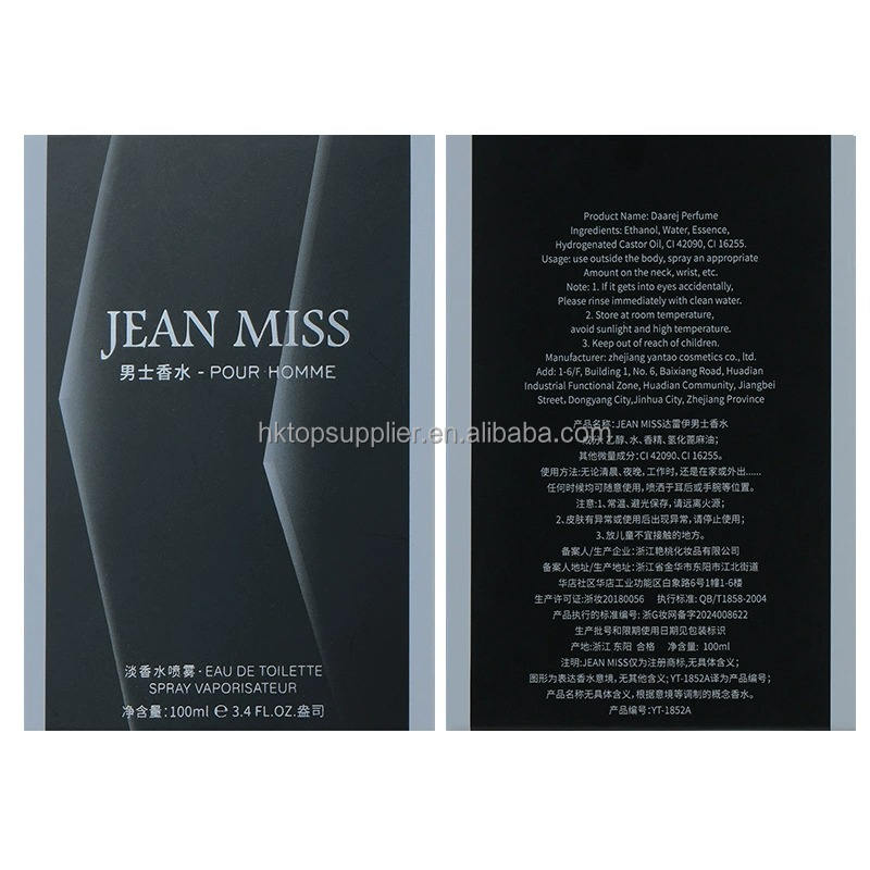 100ml Arabic Perfumes Dubai Floral Long-Lasting Fresh Eau De Parfum Light Fragrance Perfume for Men