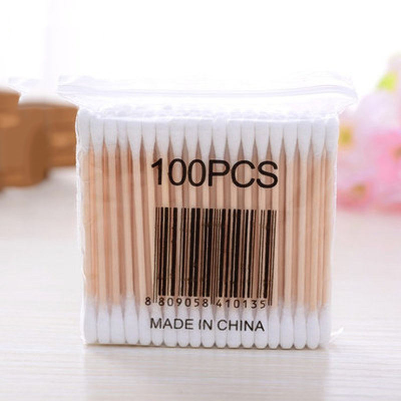 Pack of 100 Double-Head Cotton Swabs with Soft Wood Bamboo Paper Sticks Women's Makeup Nose Ear Cleaning Baby Health Care Tools
