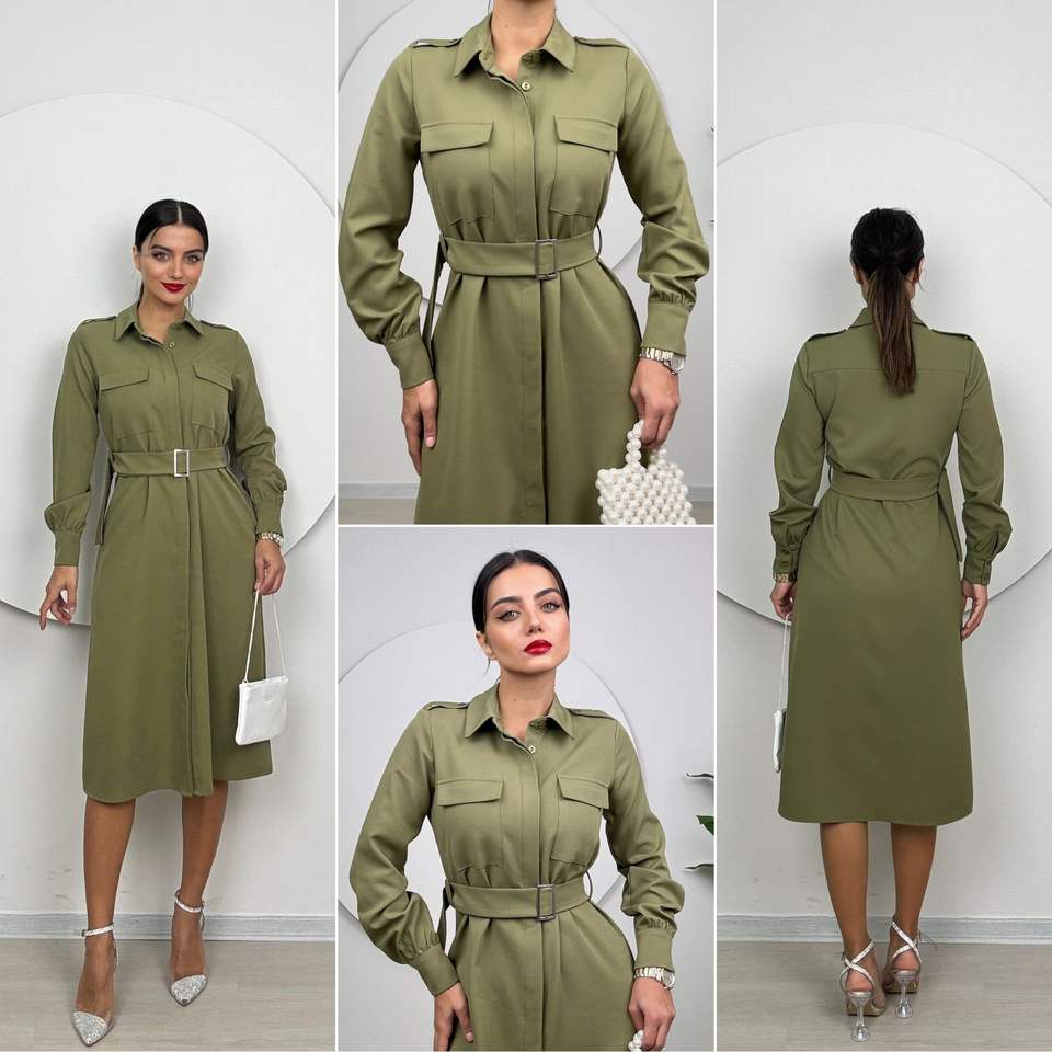 1012 Comfortable Straight Silhouette Pocketed Tie-Up Dress