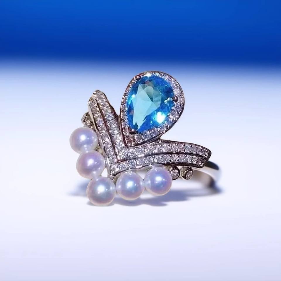 10657DIY Pearl Accessories S925 Silver Ring Empty Holder Concealer Silver Jewelry Holder with 11-13mm Round Beads