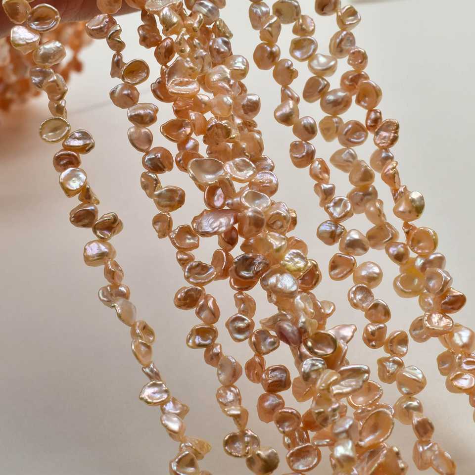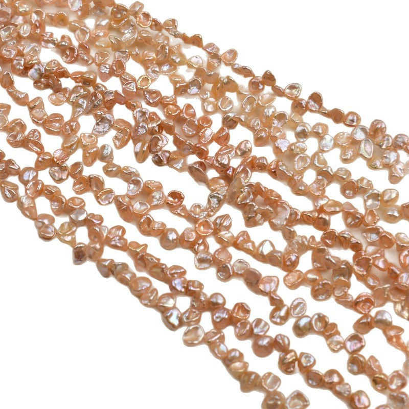 WENCHI 1083 Baroque Pink Gold 37-Hole Petal-Shaped Side Hole Beads DIY Jewelry Accessories Natural White Freshwater Pearls 6-7mm