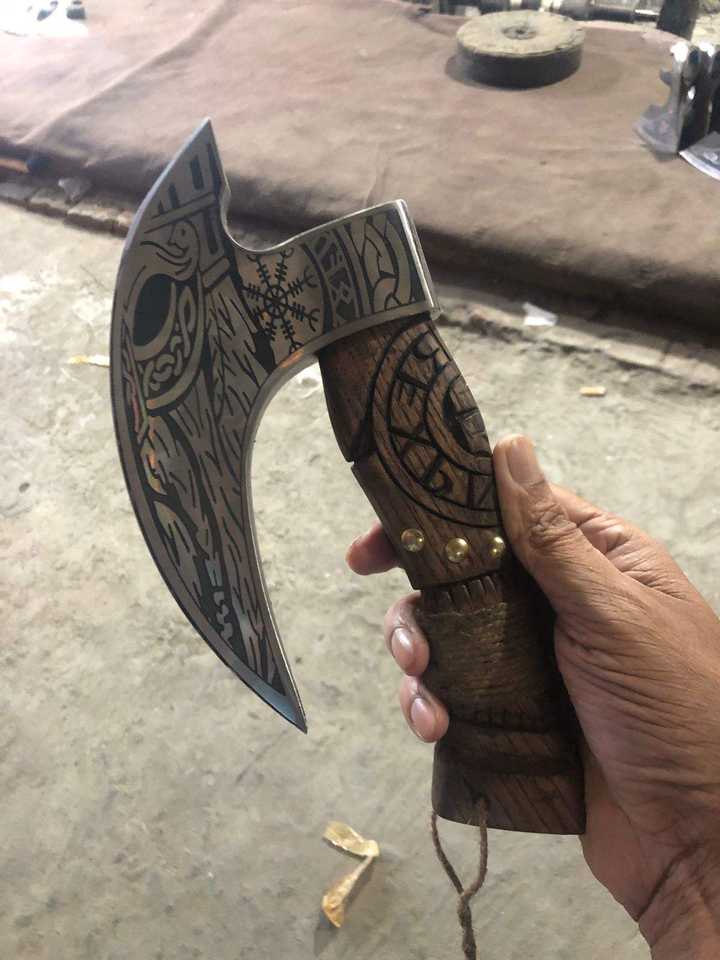 1095 Damascus Steel Embossed Tactical Head Axe High Carbon Stainless Steel Industrial/DIY Grade Ash Wood Handle Outdoor Camping