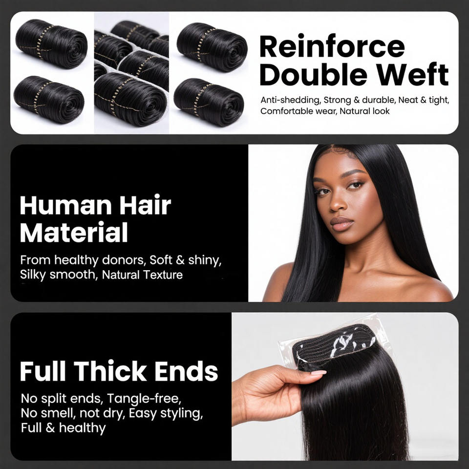 10A Straight Bundles Human Hair 18 20 22 Inch Brazilian Virgin Hair Extensions Natural Black Double Weft Unprocessed