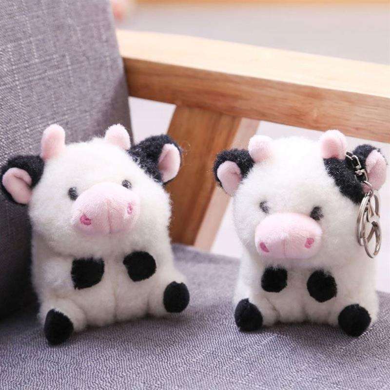 10CM Cow Plush Keychain Toys Stuffed Animal Cow Milk Keychains Soft Plush Key Chain Kawaii Charm Bag Pendant Decoration