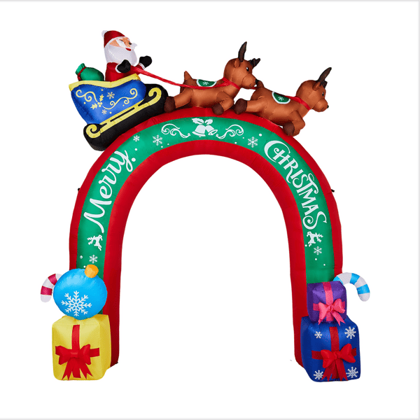 10FT Lighted Christmas Inflatable Archway with Reindeer Pulling Santa's Sleigh Outdoor Holiday Yard Decorations
