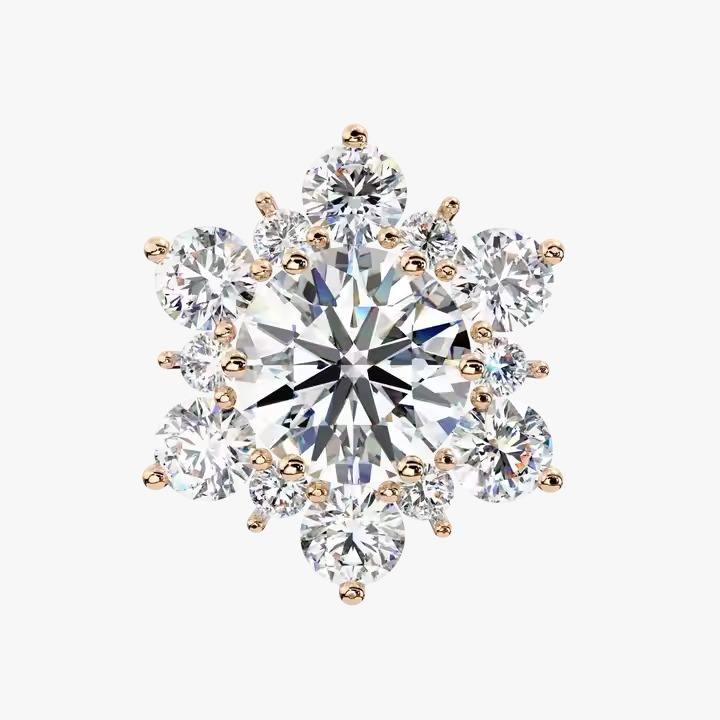 10K/14K/18K Rose Gold Round Lab Grown Diamond Leaf Design Classic Earrings for Women