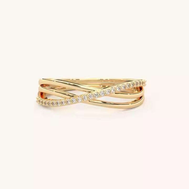 10K/ 14K/ 18K Solid Gold Statement Ring round cut Lab Grown Diamond Ring X Cross Unique Style Shank Stackable Rings gift for her