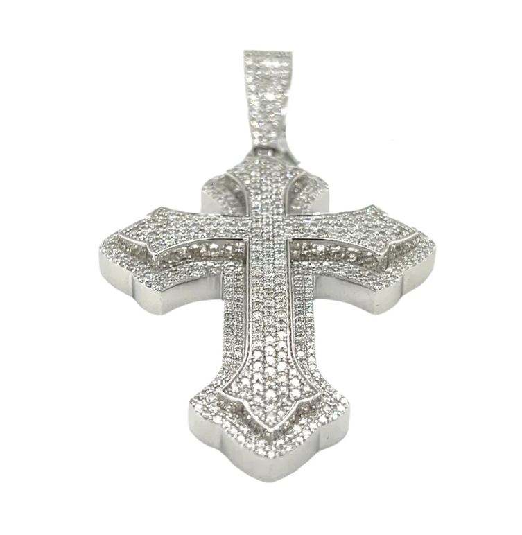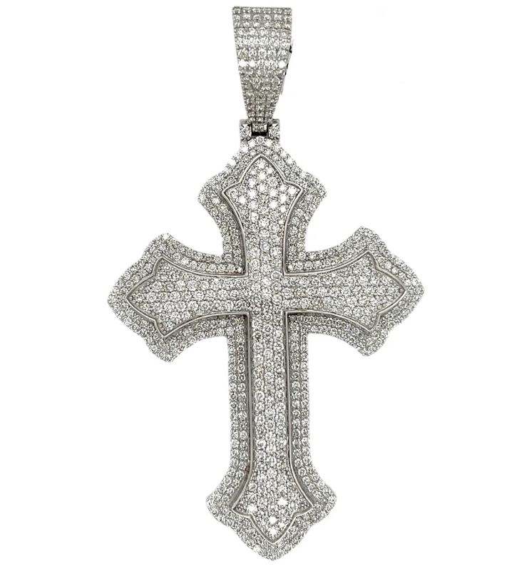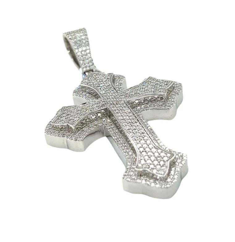 10K Gold CVD Diamond Cross Pendant: Unisex Baguette Design