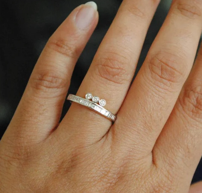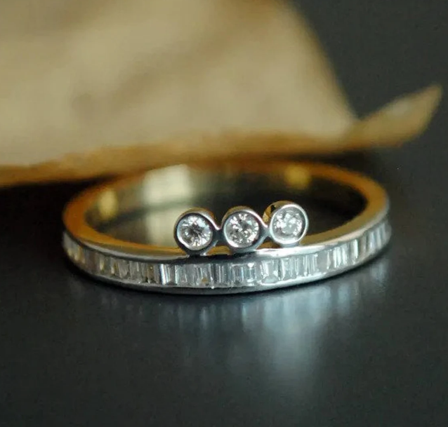 10K Gold Plated Lab Grown Diamond Wedding Band 3 Bezel Set Engagement Ring with GIA/IGI Certificate for Party and Love Gift