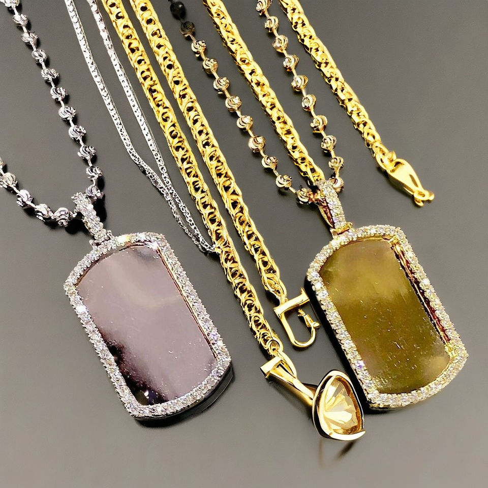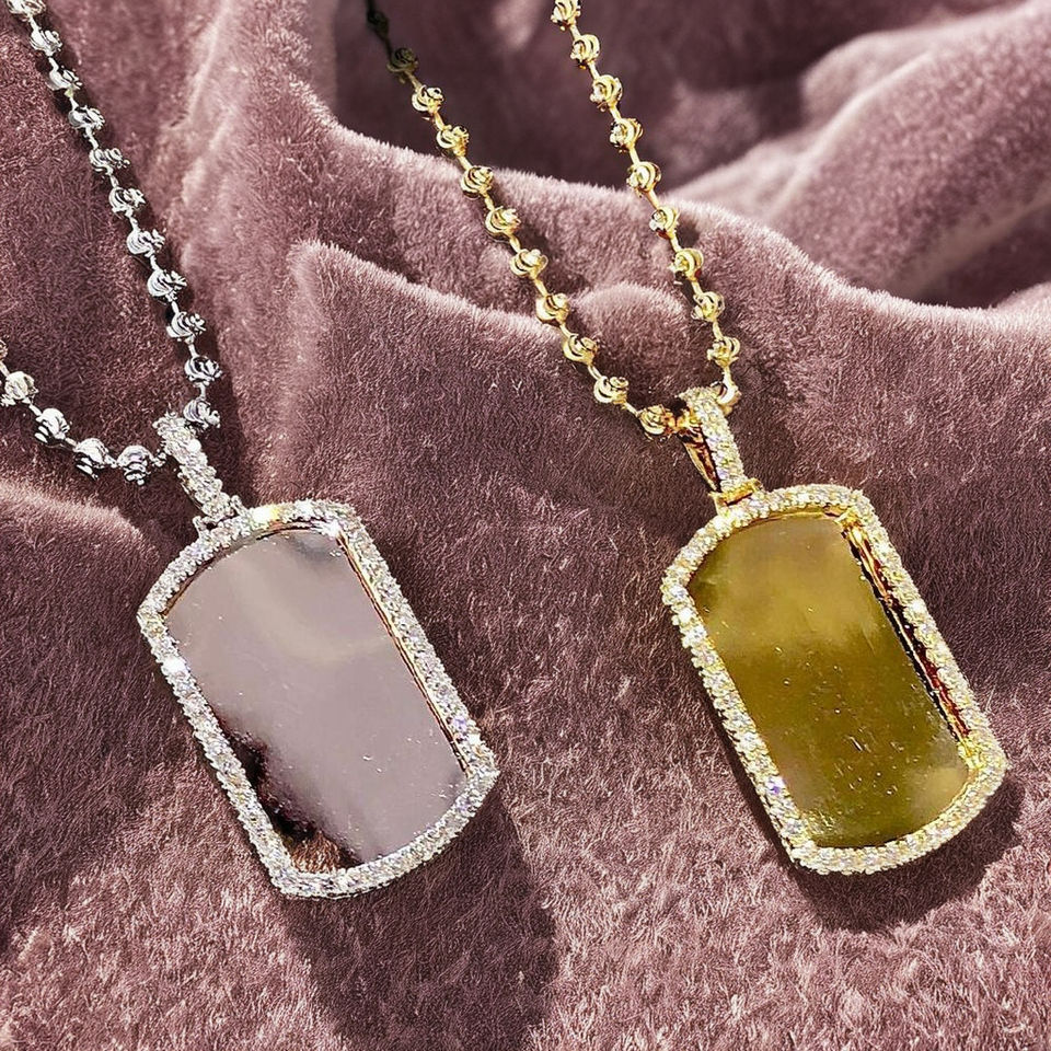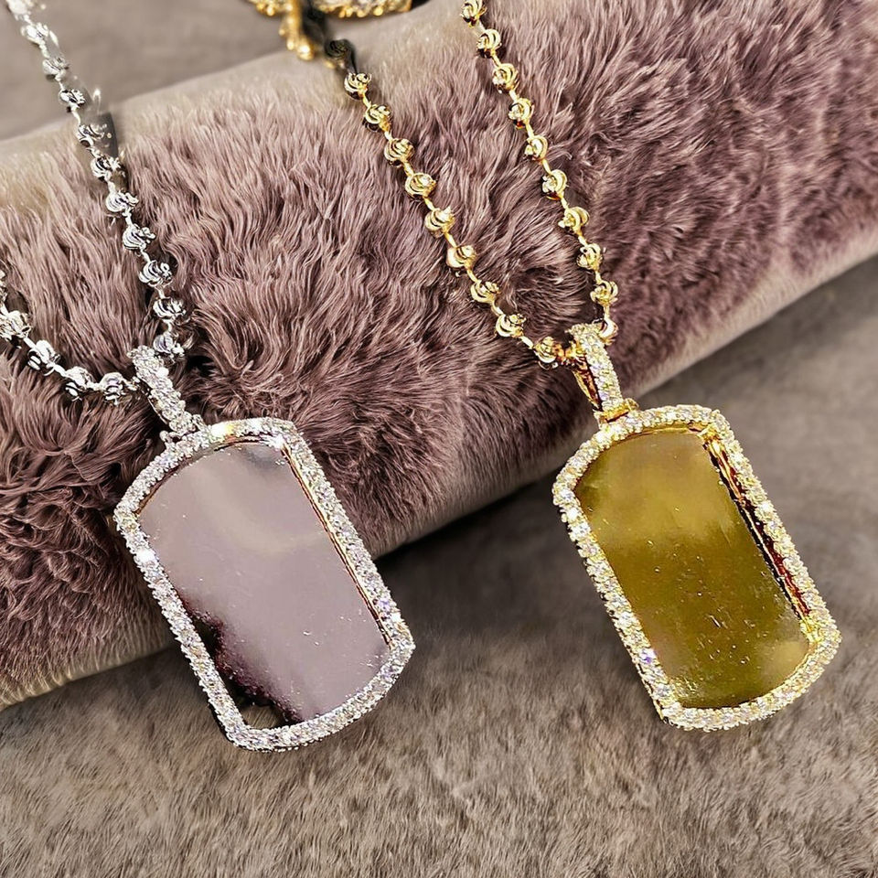 10K Gold Rhodium Plated Moissanite Diamond Rectangle Shape Memory Photo Frame Pendant Iced Hip Hop Style Trendy Custom Fashion