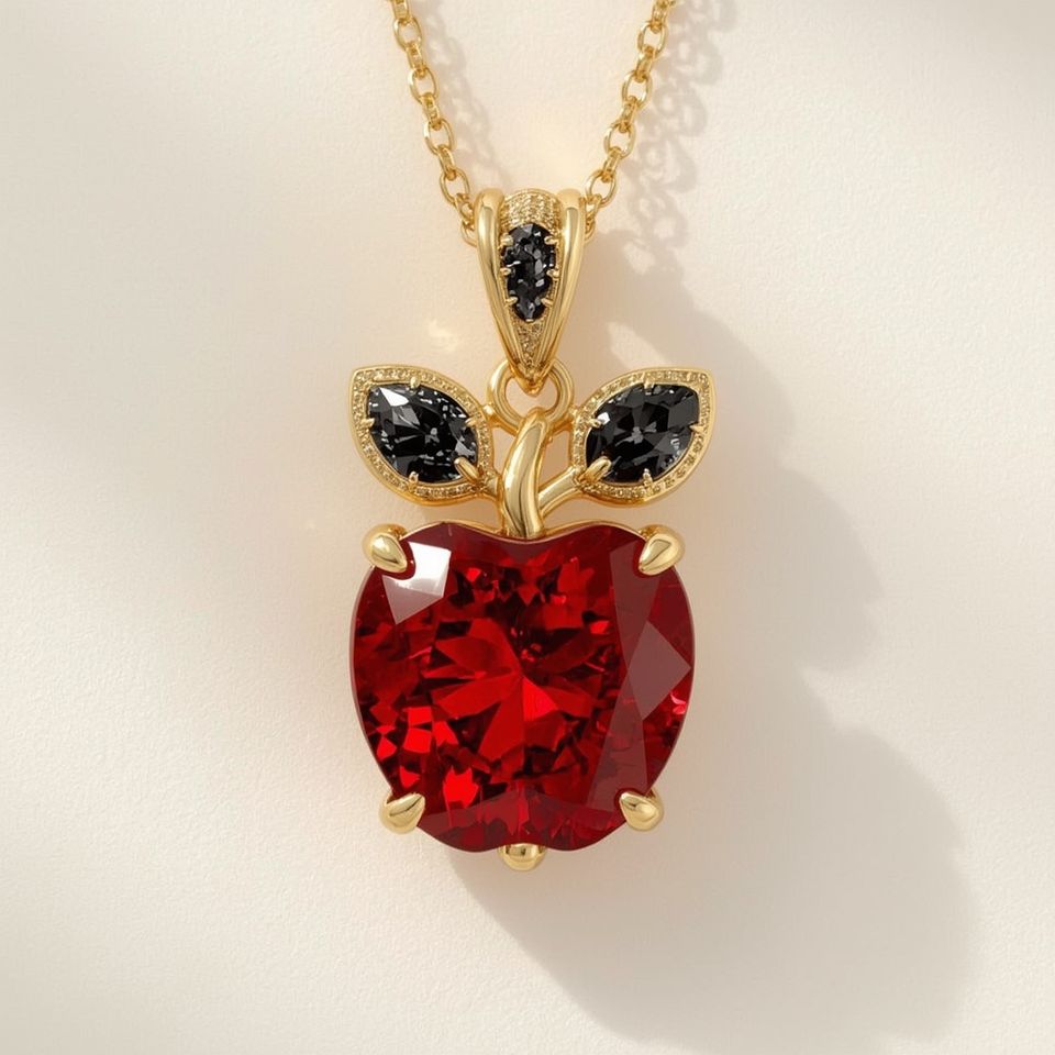 10K Real Gold Apple Pendant Necklace for Women Red Agate Black Onyx Fine Gemstone Jewelry OEM Manufacturer Thailand