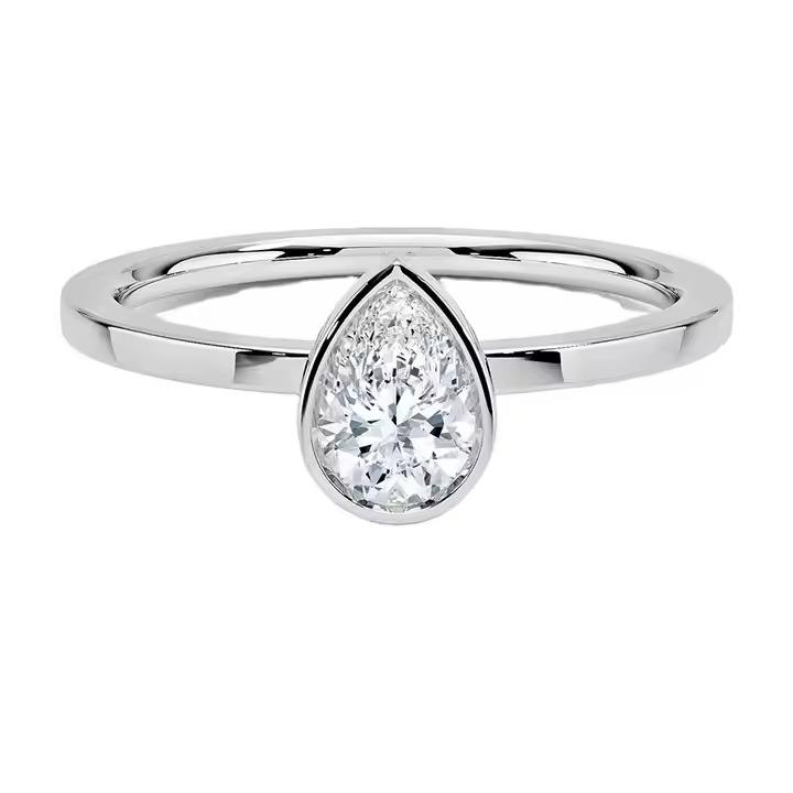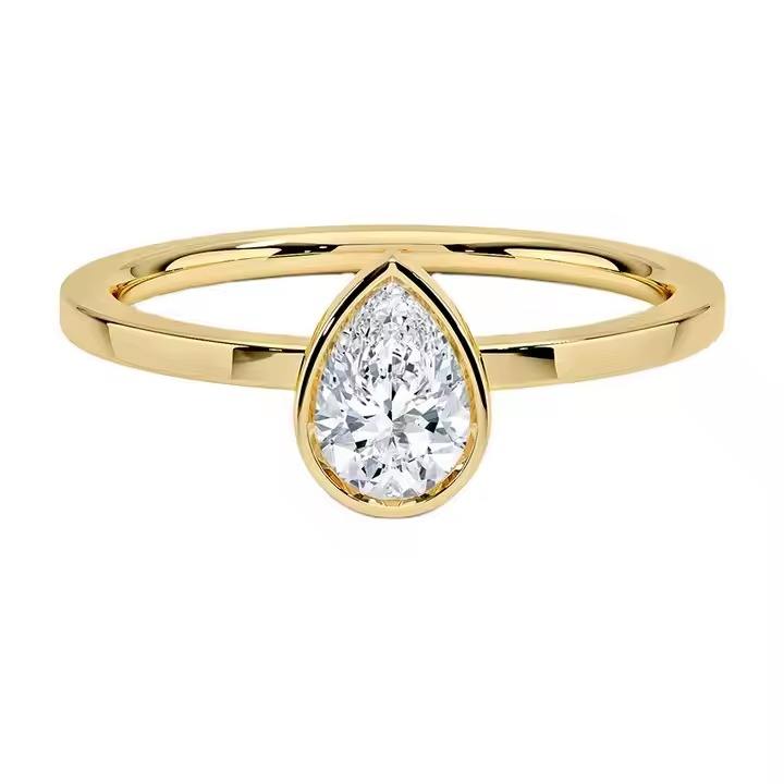 10K Solid Gold Engagement Ring with Rhodium Plating Classic Pear Cut Moissanite Diamond for Wedding or Party