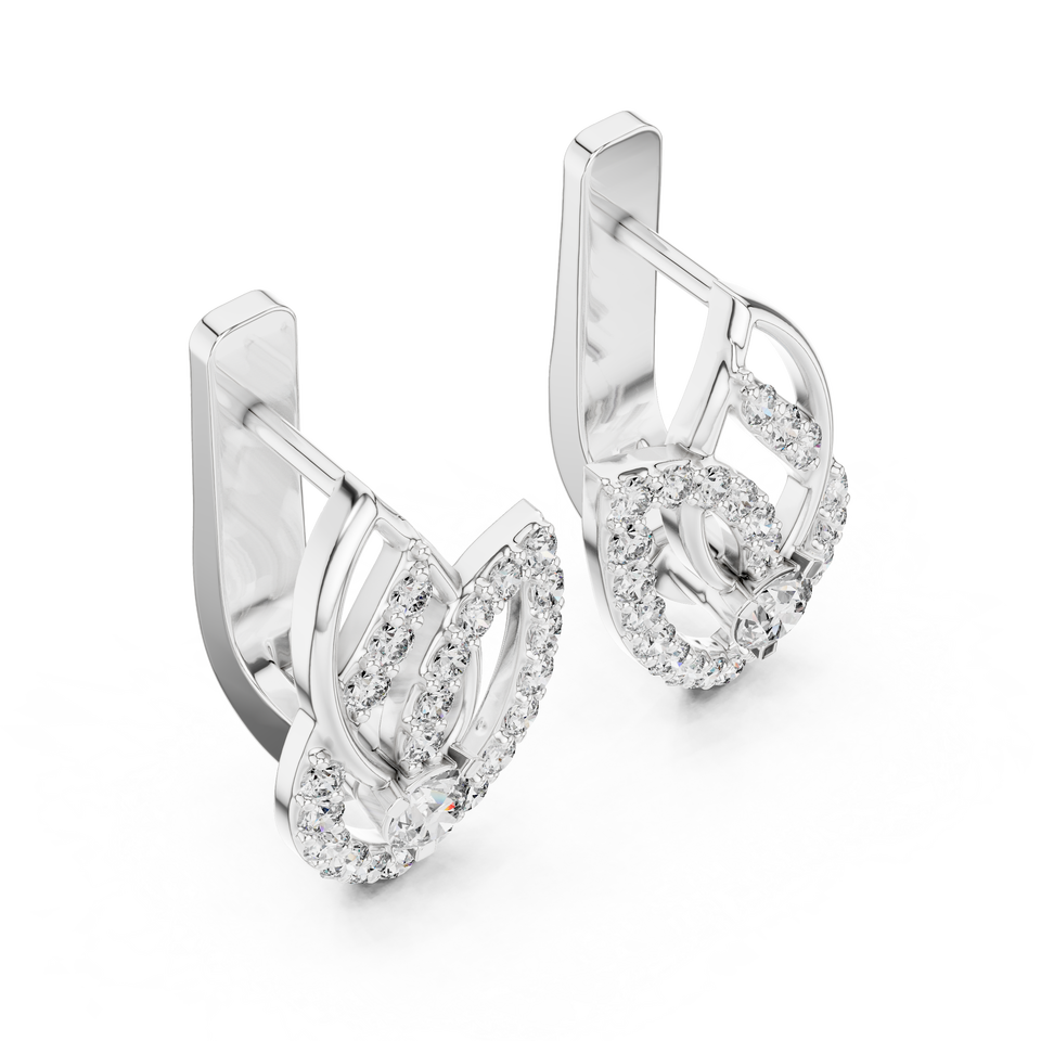 10K White Gold Lab Grown Diamond-Studded Leaf Motif Drop Earrings Rhodium Plated 0.546 Total Carat Weight Luxury Nature-Inspired