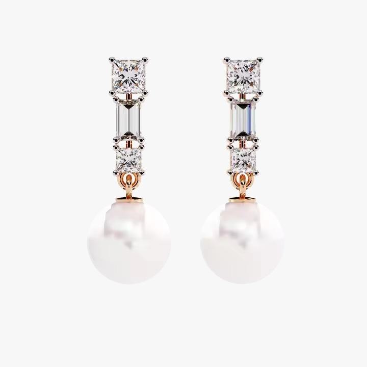 10K White And Rose Gold Round Lab Grown Diamond Earrings with VS Clarity for Women's at Affordable Price