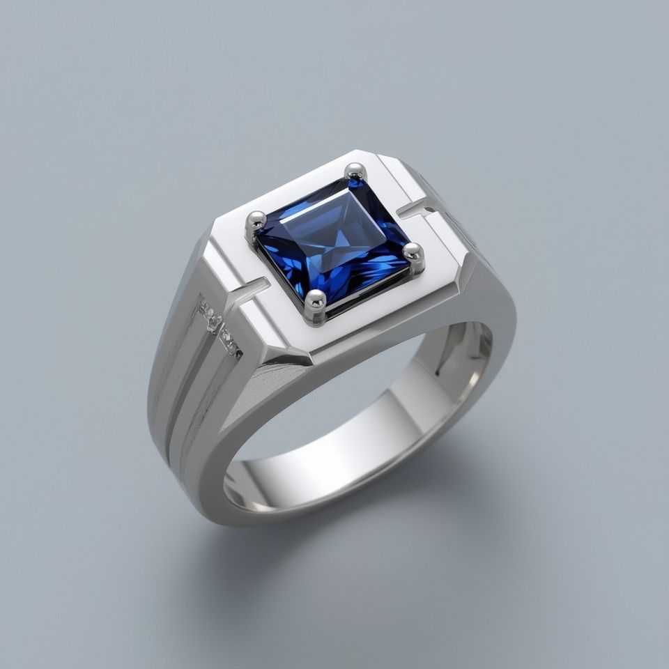 10K White Gold Blue Sapphire Men Ring Fine Gemstone Jewelry Custom Luxury Men's Ring OEM Jewelry Manufacturer