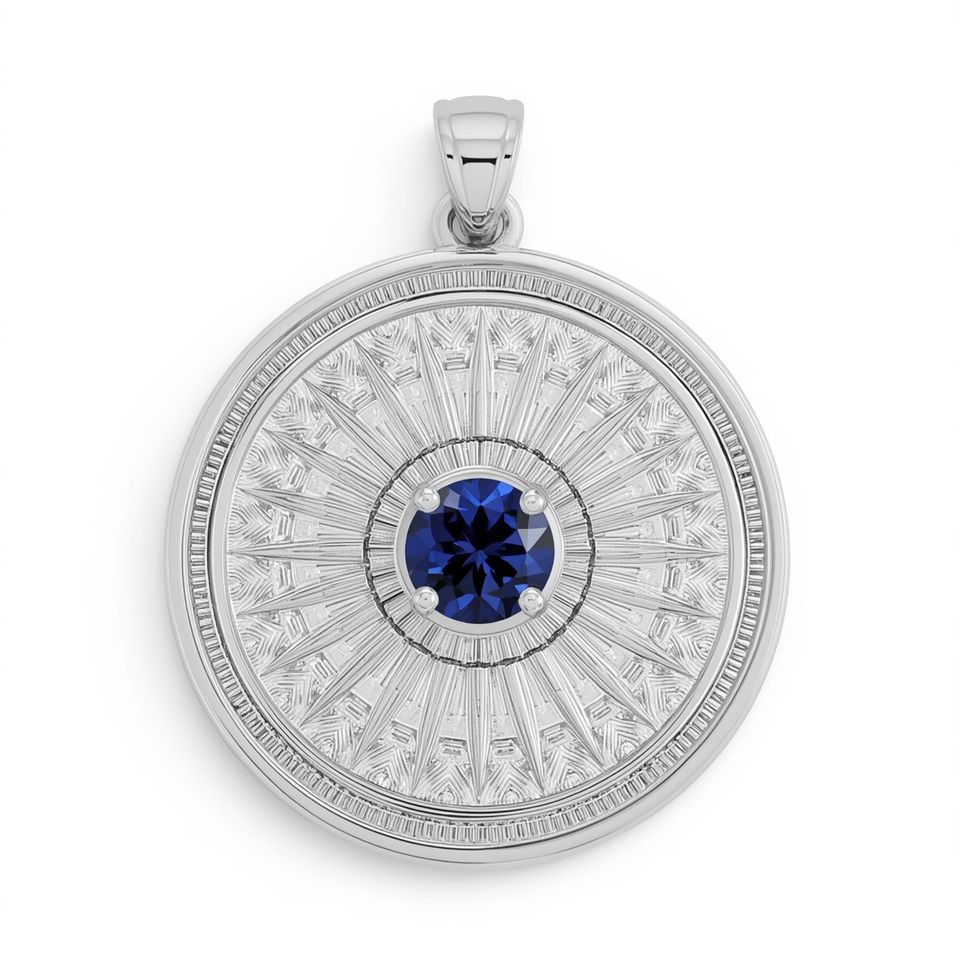 10K White Gold Blue Sapphire Pendant Medallion Fine Jewelry for Women OEM Custom Sustainable Real Gold Jewelry Manufacturer
