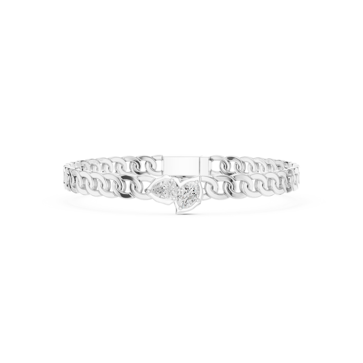 10K White Gold Double Diamond Link Chain Bracelet