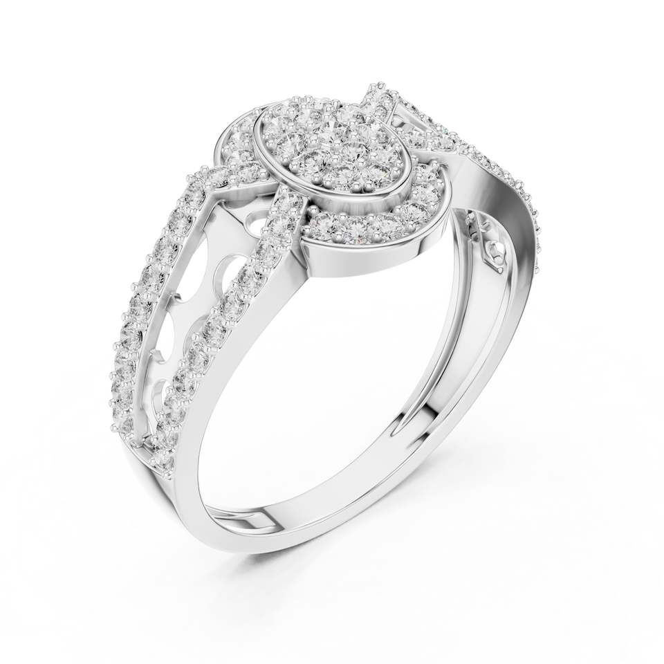 10K White Gold Rhodium Plated Lab Grown Diamond Halo Swirl Spiral Statement Ring